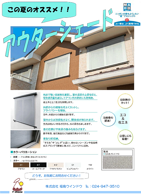 日射熱のカット!冷房費の節減!目隠しにも最適! どうぞお気軽にお問い合わせください!