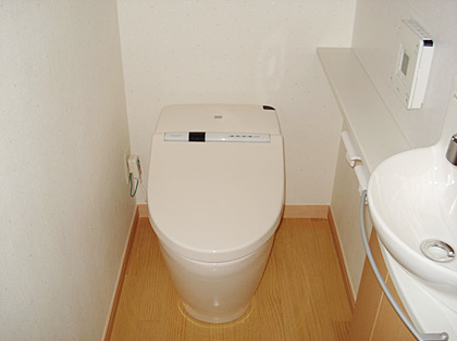 天井も高くクリーンに仕上がりお客様にも喜んで戴けました。今回の工事と合わせてオール電化にしてエコキュートを設置させて戴き次回はシステムキッチンへとリモデル。