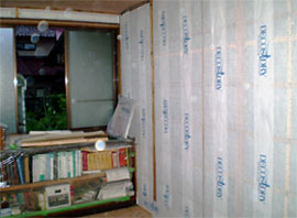平成20年7月、リフォームで寝室をセルロースファイバー断熱工事を行ったE様。壁・床・天井にセルロースファイバーを吹き込み、窓に断熱サッシ[プラマードU]を設置しました。